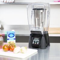 Bpa free copolyester container electronic keypad lcd display with blue backlight 4 reprogrammable blending stations sound enclosure one piece removable jar pad 3 5 hp 120v 50 60 1 ph 13 0 amps nsf cetlus made in usa.