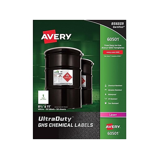 Avery Ultraduty Ghs Chemical Labels For Laser Printers Waterproof Uv Resistant 8 1 2 X 11 Box Of 50 60501 At Staples